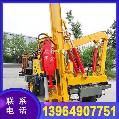 3)护栏打桩机一体机四轮驱动底盘,刹车采用碟刹加断气刹的方式,特别适应斜坡、山道等复杂地形。