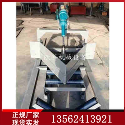2、可变槽角卸料器能自动实现可变托辊由平形到槽形或由槽形到平行之间的转换。在平形托辊与槽形托辊转换过程中以及胶带输送机发生跑偏(允许范围之内)的情况下不产生洒料现象。