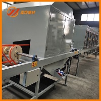 彩石瓦自动生产线是由我厂技术人员采用较高的生产工艺以气、电、机械为一体,自主研发的彩石瓦专用设备。工作速度采用变频无极调速,喷胶,布沙,烘干一次性完成。本设备在长期运转的基础上多次试验改进,具有高效,稳定,节能,简单易操作等特点。 本设备分喷胶布沙段,初次烘干段,面胶段和二次烘干段共70米,通过滚子链往复输送。 喷胶布沙段:主体是由160*型钢焊接而成 长:4000MM 宽:1650MM 高:2000MM 技术参数:电源380V/50-60HZ 总功率:4KW 生产速度:4-10S/片,由变频器通过PLC控制。喷胶由气动无气喷涂机打入自动喷枪,再由电机带动自动喷枪往复自动喷涂。 彩砂通过进料口倒入在通过搅笼搅进提升机提入沙斗由PLC控制使用。 烘干段:主体由160*型钢方管焊接而成,保温由1.5MM冷板折弯成型内用140*高密度保温棉填充。 长:6000mm/节共10节共60米[包括二次烘干] 宽:1650mm 高:1500mm 技术参数:电源380v/50-60hz总功率108KW【包括二次烘干】输送变频电机4kw/2台由变频器通过PLC控制,电热管1KW/根共100根。由数显温控仪【0度-160度】自动控制温度。 面胶段:主体由160*型钢焊接而成。 长;1500mm 宽:1650mm 高;2000mm 技术参数;电源380v/50-60HZ总功率;1.5KW由变频器、PLC控制。面胶由气动无气喷涂机打入自动喷枪,再由电机带动自动喷枪往复自动喷涂。