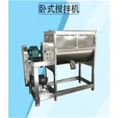 卧式螺带混合机由U形筒体、螺带搅拌叶片和传动部件组成;螺带状叶片一般做成双层,工作时外层螺带将物料从两侧向中央汇集,内层螺带将物料从中央向两侧输送,形成了二个循环物流。搅拌部件还可以制作成桨叶式或增加飞刀,适应不同的物料。