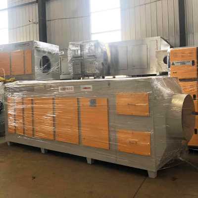 运用特定波段的紫外线光束,结合催化剂及臭氧对废气分子行行光解、催化、氧化作用,使气体物质其降解转化成低分子化合物、水和二氧化碳,通过紫外线、臭氧、催化剂三重净化过滤后,能去除挥发性有机物(VOC)、无机物、硫化氢、氨气、硫醇类等主要污染物以及各种恶臭味。