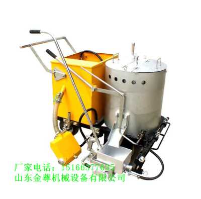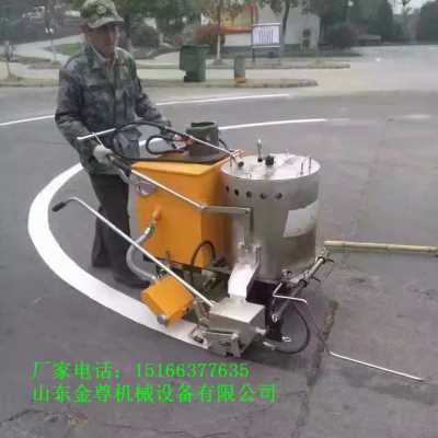 山东金尊小型划线机车体轻巧,结构紧凑,外形美观;升降式把手设计,操作者可根据需要作出调整;玻璃微珠自动散播器;保温加热桶可拆卸设计,合理搅拌轴设计,解决了搅拌桶经常存料的现象;可调式指针,提高工作效率;采用高精度钢板知道而成的涂敷斗,耐高温,耐腐蚀,不易变形,加热快等优点;采用铸铁与进口橡胶特殊制成的车轮,轻便,结实,耐用。